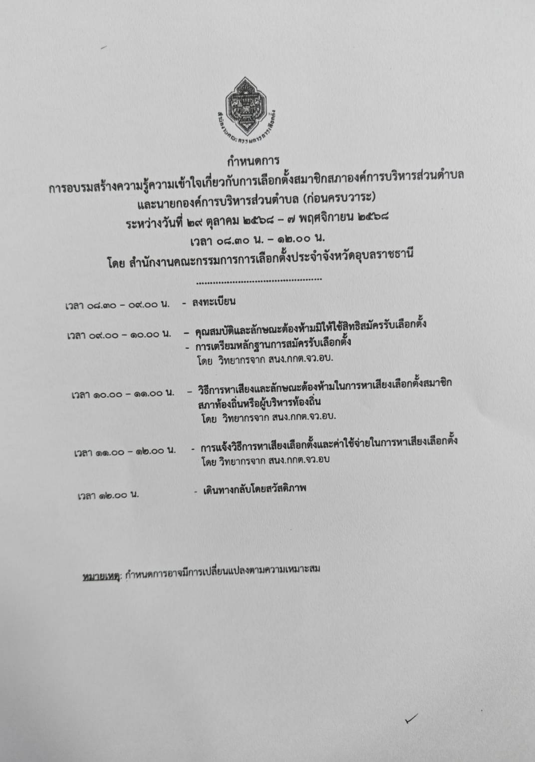 ข่าวประชาสัมพันธ์ ขอเชิญชวน คณะผู้บริหารท้องถิ่น กำนัน ผู้ใหญ่บ้าน ผู้นำท้องที่ หรือผู้ประสงค์จะสมัครรับเลือกตั้งเข้ารับฟังการอบรม "สร้างความรู้ความเข้าใจเกี่ยวกับการเลือกตั้งสมาชิกสภาท้องถิ่นหรือผู้บริหารท้องถิ่น(ก่อนครบวาระ)