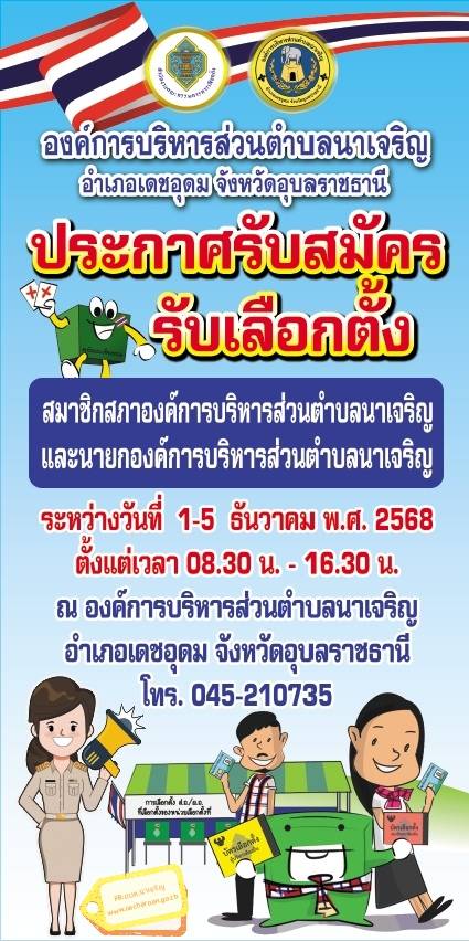 ข่าวประชาสัมพันธ์ รับสมัครรับเลือกตั้ง - สมาชิกสภา อบต.นาเจริญ - นายก อบต.นาเจริญ วันที่ 1-5 ธันวาคม 2568