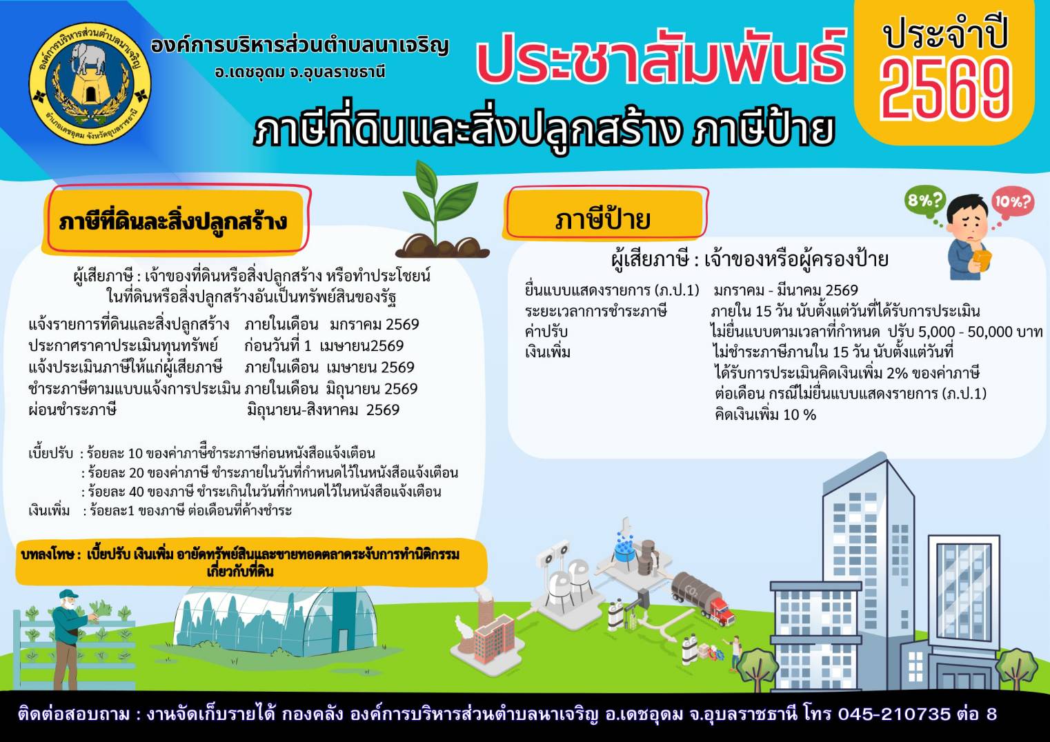 ข่าวประชาสัมพันธ์การจัดเก็บภาษีขององค์การบริหารส่วนตำบลนาเจริญ อำเภอเดชอุดม จังหวัดอุบลราชธานี